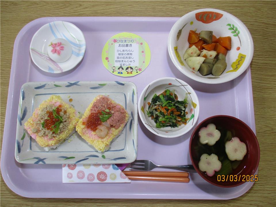 ~おまけ~ ひな祭り当日の昼食は《ひし形ちらし寿司》 こちらも「可愛くて、おいしい♡」と大好評でした。