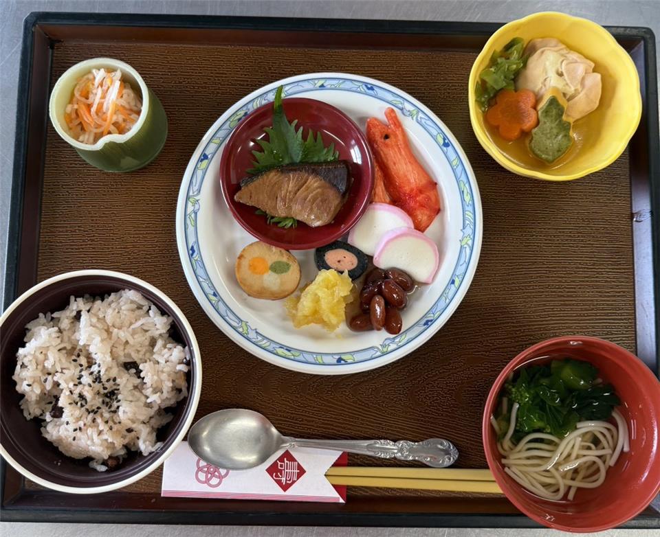 お昼はおせち 栗きんとん 昆布巻き ぶりの照り焼き… お赤飯、なますが特に人気でした。