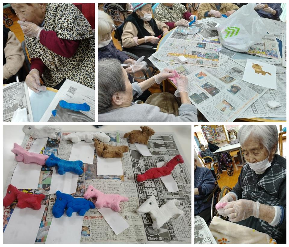 カラーの粘土で干支飾り