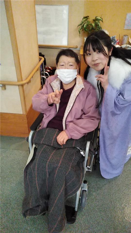 職員さんの振袖姿を見た入居者様は「綺麗だね~」 「私にもこんな時代があったんだろうね」などと仰っていました。 最後に一句 【振袖や 昔を想い 涙ぐむ】 次回もお楽しみに~♪ ※画像の掲載は職員本人の同意を得ています。