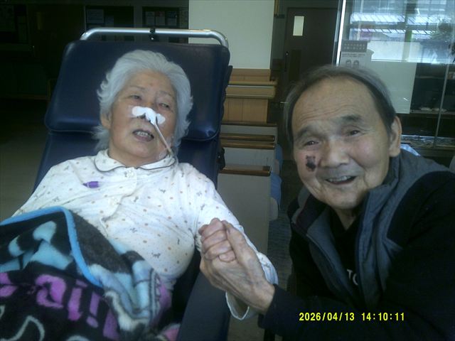 前回から約半年ぶりの再会で涙ぐむ姿が見られました。面会中はお互いずっと手を握り旦那様が奥様に話しかけているのが印象的でした。