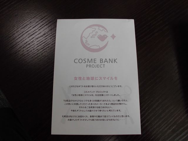 さて今日は、題名にもある「コスメバンクプロジェクト」についてお話しさせていただきます。