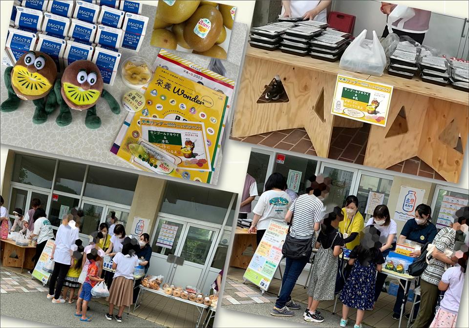 今年の協賛提供品はj-milk様の牛乳とゼスプリ様のキウイです。 7月はデザートに使用しましたが、沢山頂いたので牛乳とキウイを配布し「こんなにもらっていいの?」と大変喜ばれました☆