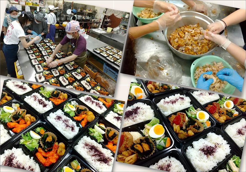 おべんとうを作る場所は、榊原会館様の調理場をお借りしています。また、榊原会館様には物価上昇の中こども達のためにと毎回おべんとうにプラスα食材を追加して頂いてとてもありがたいです♡*。+(*ˊᵕˋ*) 調理ボランティアは、京福会の他にも色々な方が参加されています。150個のおべんとうを作るのは大変ですが、皆で協力しあい和気あいあいと楽しみながらおべんとうを作っています♪