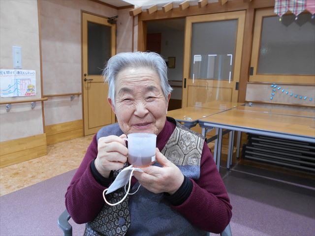 体操が終わったらしっかり水分補給をしますよ~ 今日はホットレモンティーをいただきました。 体を動かして、暖かい飲み物をしっかりとりました。 今年は、少しずつでもいろいろな行事を行えるようになりますように…