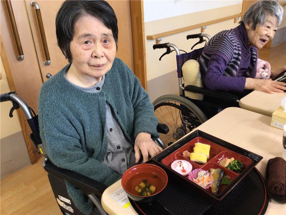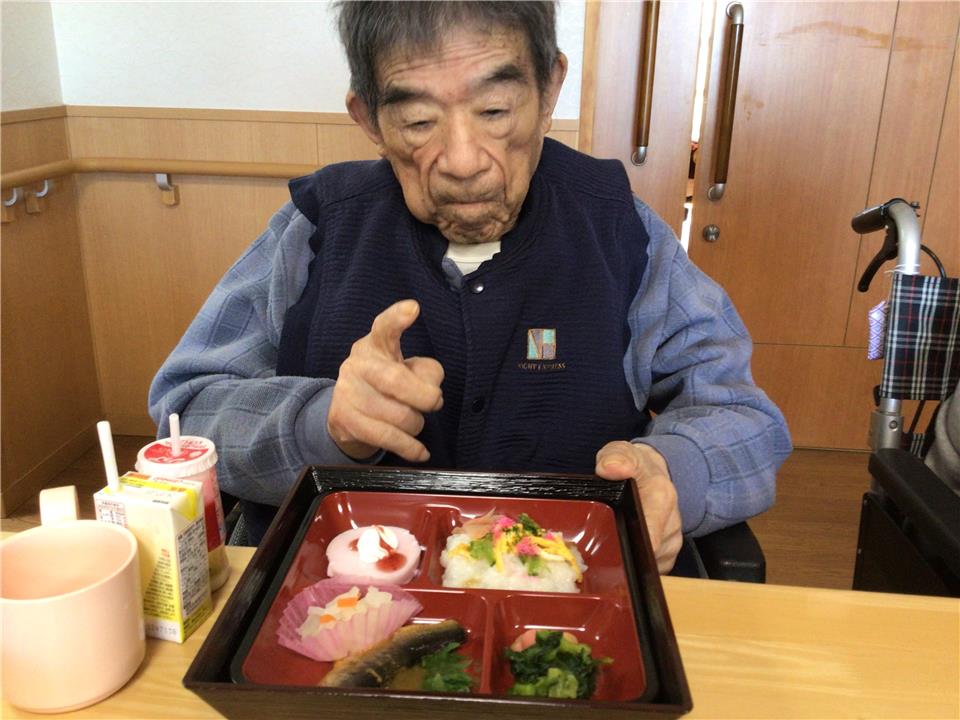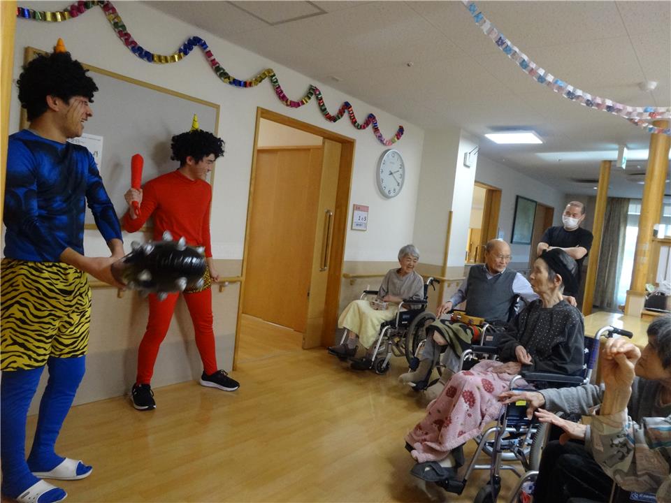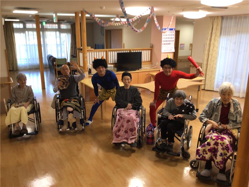 節分の特別メニューをお召し上がりいただきました。 お腹が満腹になったところで赤鬼、青鬼の登場です。