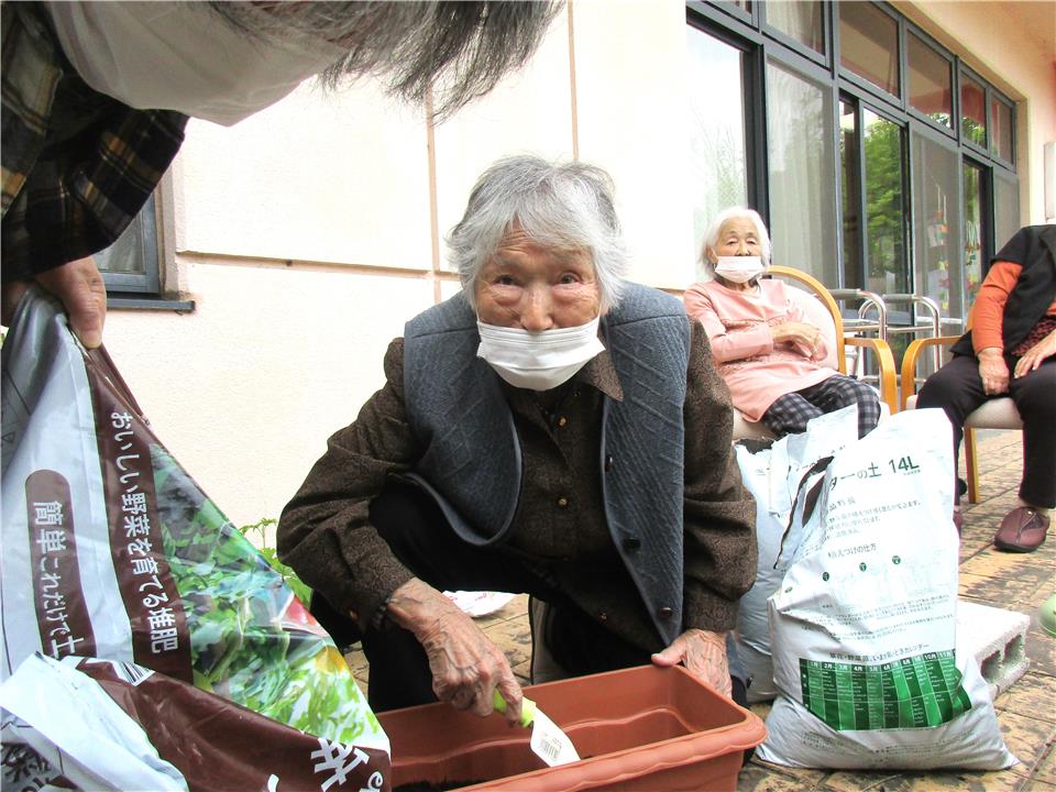 「おやつ作りに使う野菜の苗植え」 ~那須塩原市のデイサービスセンター安暮里~