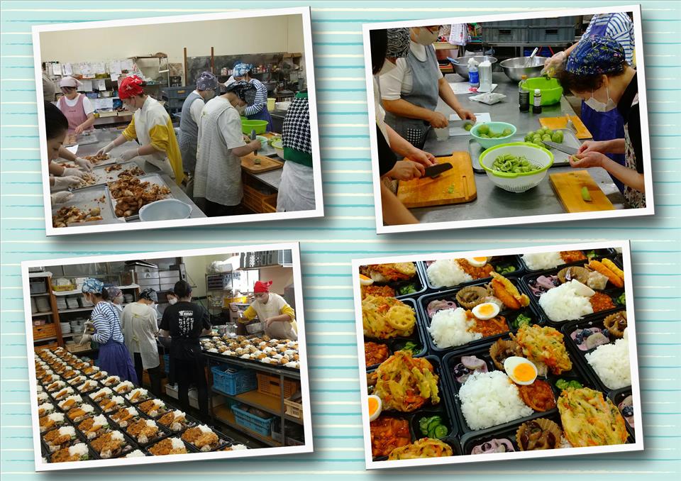 おべんとうを作る場所は、榊原会館様の調理場をお借りしています。また、榊原会館様には物価上昇の中こども達のためにと毎回おべんとうにプラスα食材を追加して頂きいつもありがとうございます(*ˊᵕˋ*) 調理ボランティアは、京福会の他にも色々な方が参加されています。毎年調理ボランティアのメンバーが増えているような気がします(*ˊᗜˋ*)皆で協力しあい150個のおべんとうが出来上がりました♡