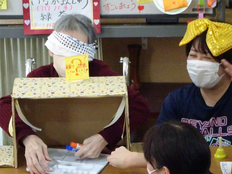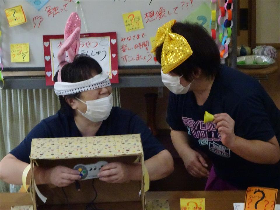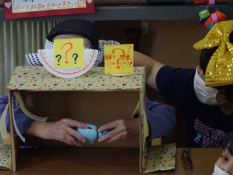 目隠しをして箱の中身を探ります☆