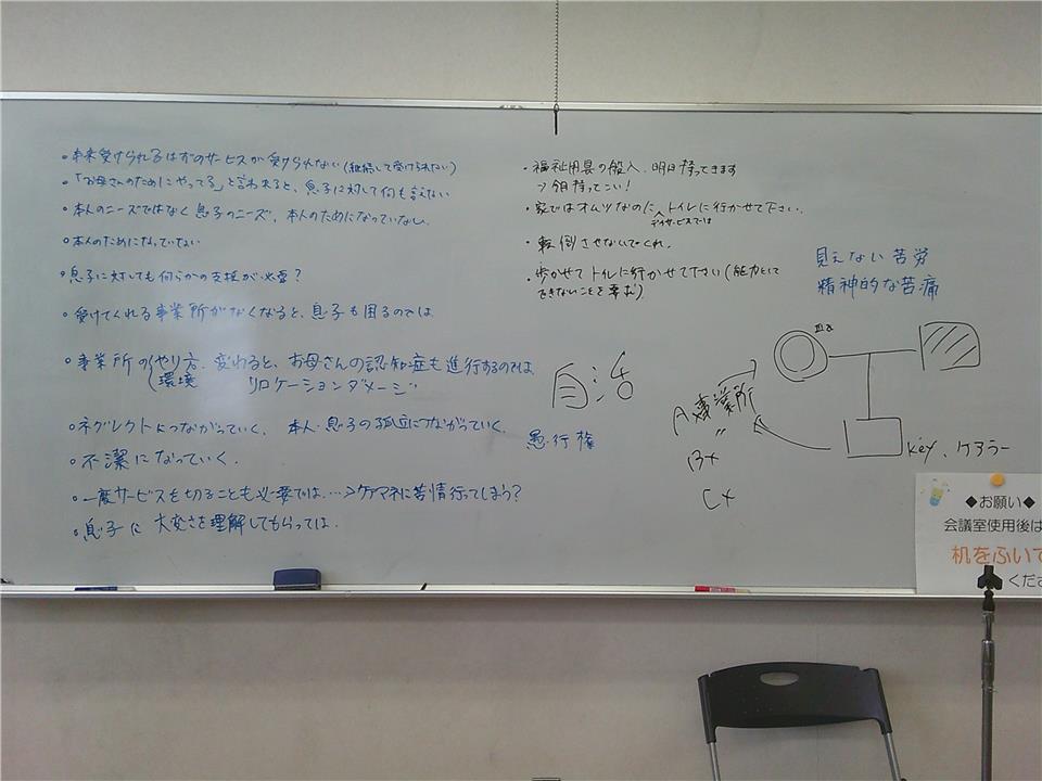 今回の会議では、ご家族から過剰な要求を受けたことがあるかについて、経験談を話し合いました。