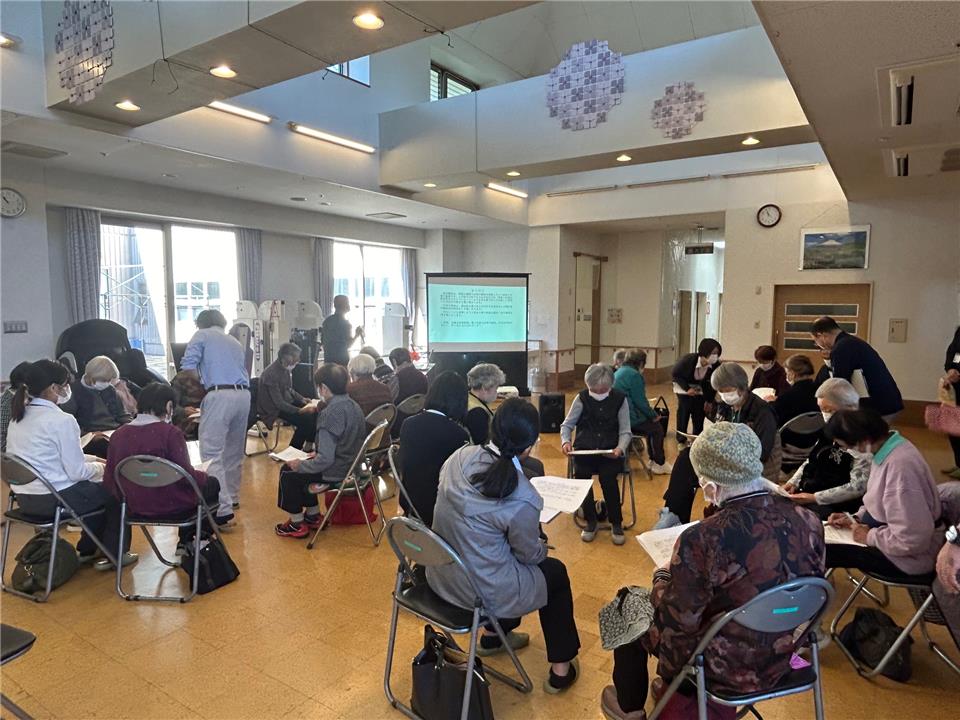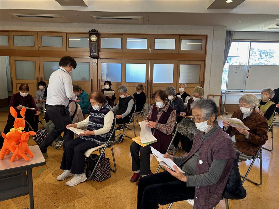 本日は体操後の余暇活動の時間を活用し、認知症サポーターのキャラバン・メイトである山田と髙瀨が講師として養成講座を実施させていただきました。