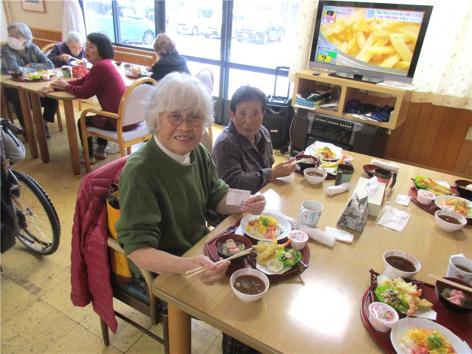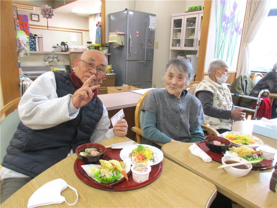 今日は、「桃の節句メニュー」皆様の顔もにっこり(*^-^*) 男性も女性も一緒にお祝いの日です。
