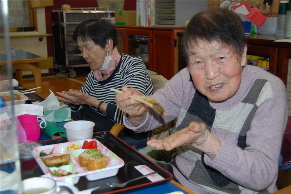 4月からの新規のご利用者様もご一緒に♬ 「初めて食べたよ、本当にお花見に来たみたいだね(*^-^*)」