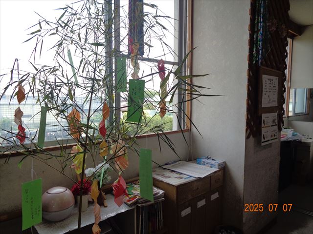 短冊に願い事を書いて笹に飾りました。願い事が叶うと良いですね。