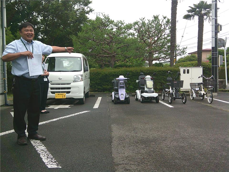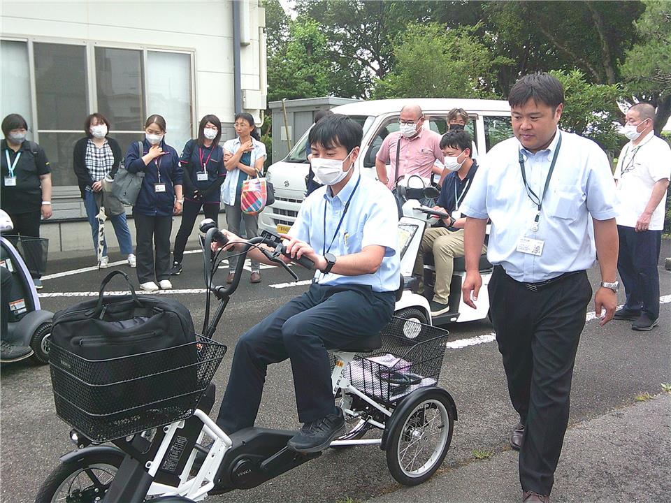 運転免許を手放すことは、一つの勇気ある決断です。でも、それで終わりではありません。その後の生活をどう支えていくか。移動手段があれば、自分らしさを取り戻すこともできる。シニアカーは、その第一歩を支える手段かもしれません。 話合いの後、株式会社セリオの福祉用具相談員の小原澤様より、説明をおこなっていただき、公民館の駐車場で実際にシニアカーや三輪車・四輪車の試乗を行いました。