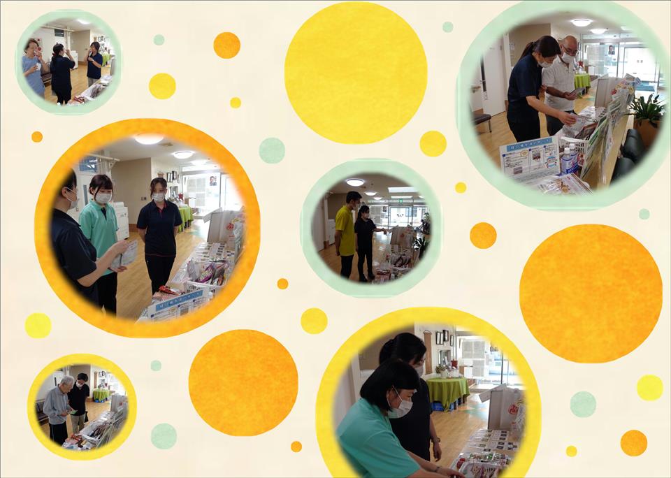 今回は、寿山荘職員・入居者様・利用者様の他にもご家族様・法人内職員・業者の方など、 沢山の方が展示を見に来て下さり、 管理栄養士・栄養士がお話を伺いながらその方に合った展示コーナーの説明をさせていただきました。 展示の他にも経口補水液や栄養補助食品の試飲をしていただきました。 お土産には、その方に合った経口補水液・栄養補助食品・非常食などをお渡ししました。