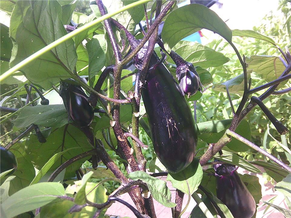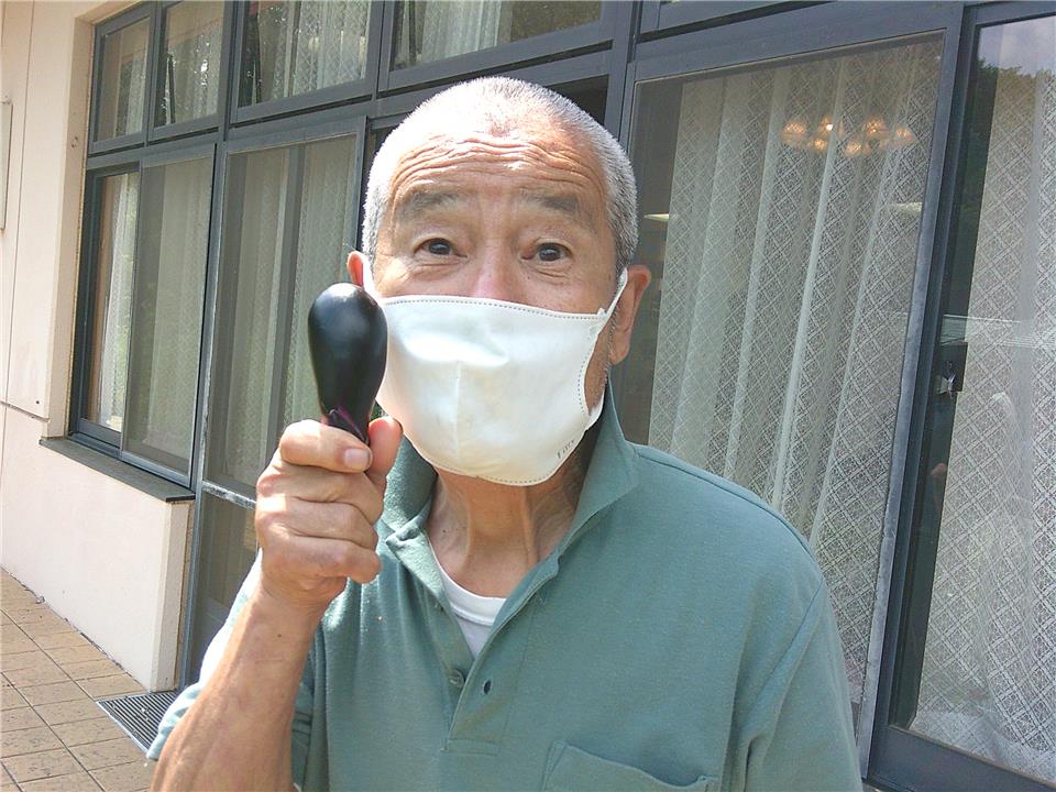 ナスもこんなに立派に育って一安心です! 日照りが続いた日も、一日に数回、皆さんで協力し合って水やりをしたかいがありました。