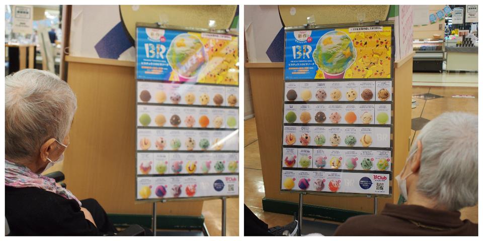 サーティーワンアイスクリームに到着です! 「いろんな種類があるんだね!」 悩んだ結果、王道のバニラアイスとチョコレートアイスを注文🍨