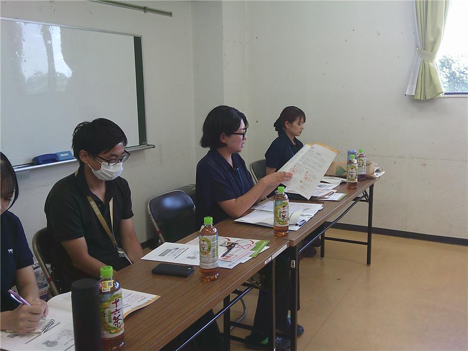 グループワークでは、事例の花子さんが出席簿の名前を書けない場面では、「ひらがなやカタカナでもいいんだよ」と声をかける、「一緒に書いておくね」とさりげなくお手伝いする。帰り道が分からないご様子の場面では、「同じ方向だから、一緒に行きましょう」などと困っていることを察して先回りして対応するという意見が出ました。
