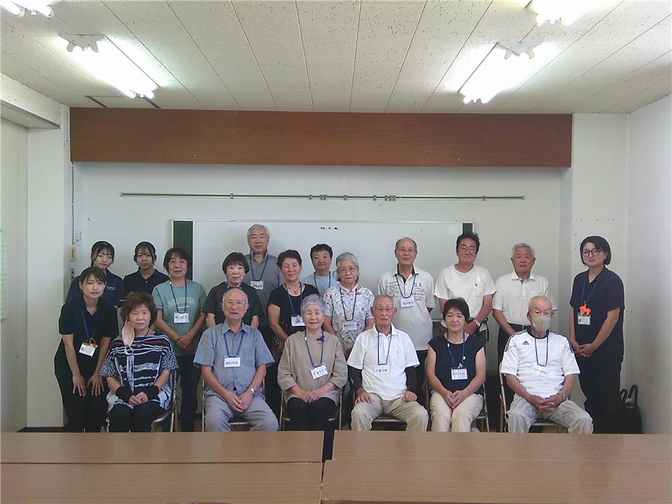 受講の記念に参加者の皆さんで記念撮影を行いました。 アンケート結果には、「認知症の妻を支えていますが、接し方について気を付ける点が分かってよかった」、「子供家族と同居ではないので、認知症にならずに生活していきたい」などの感想がありました。