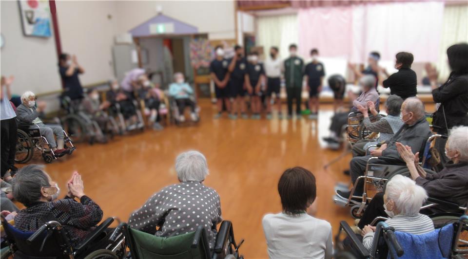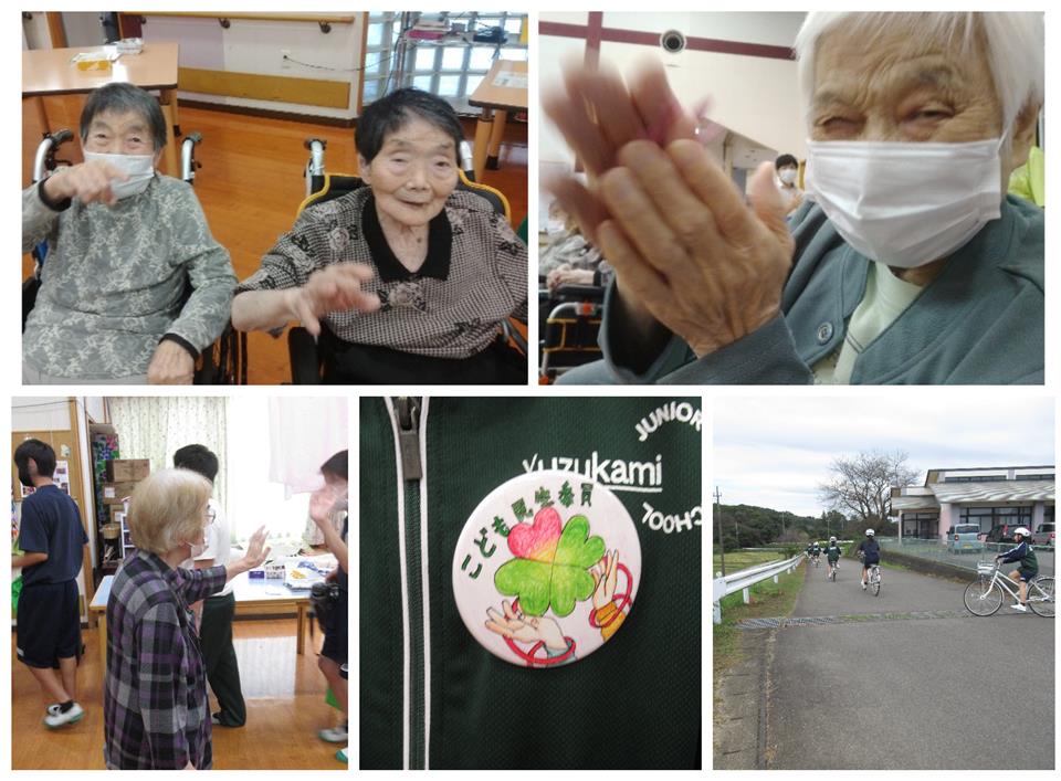 「孫、ひ孫くらいの年だからかわいいね。また来てね」とハイタッチ! 久しぶりの交流に笑顔がたくさんみられました!