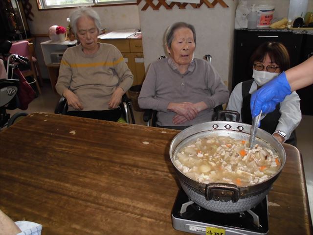 出来立ての芋煮汁、おいしく召し上がられていました(*^-^*) 身体も温まりましたね(*^-^*) だんだん寒くなってきております。 体調に気をつけて過ごしていきましょう(^^ゞ