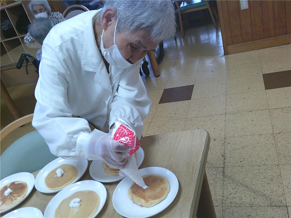 デイサービス安暮里では、皆さまで楽しく「パンケーキ作り」をしました!