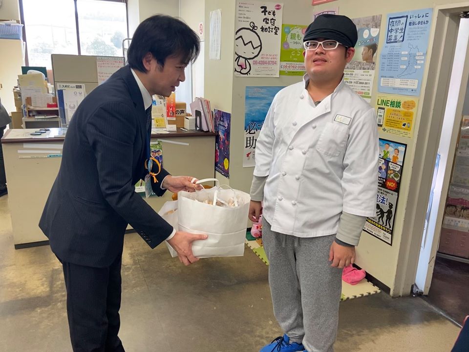 新型コロナ対策で小学校が休校となり、放課後児童クラブ(学童保育)を利用する島本町の子どもたちへ、ラスク300個を寄贈しました。